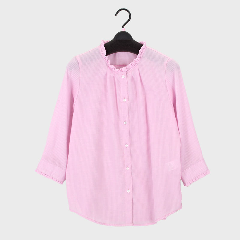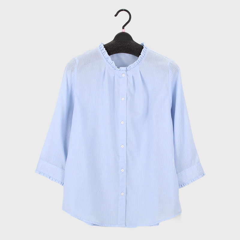 大西衣料(株)が運営する、【公式】卸・仕入れサイト『SELF WEB SHOP』で 婦人7分袖綿混ドビー衿フリルブラウス をお仕入れ!