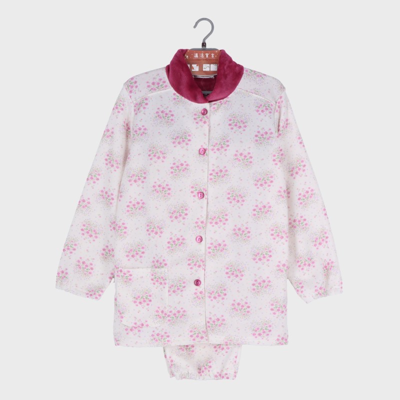 婦人マフラー衿付き前開きパジャマ(フラワーブーケ)