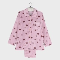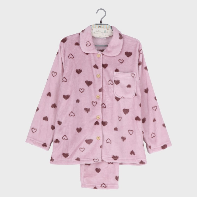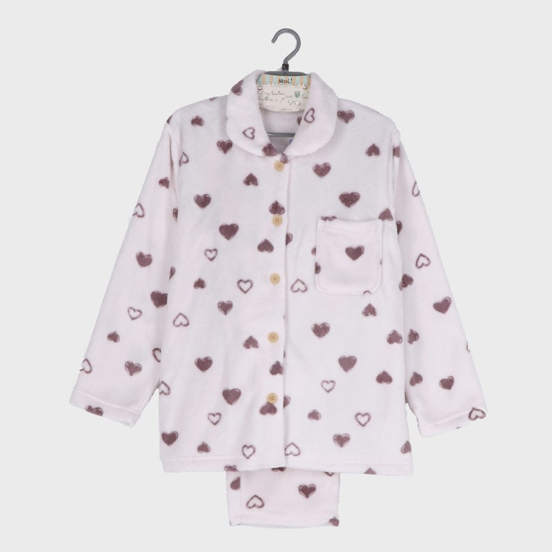 婦人ふわもこ衿付き前開きパジャマ(ハート柄)