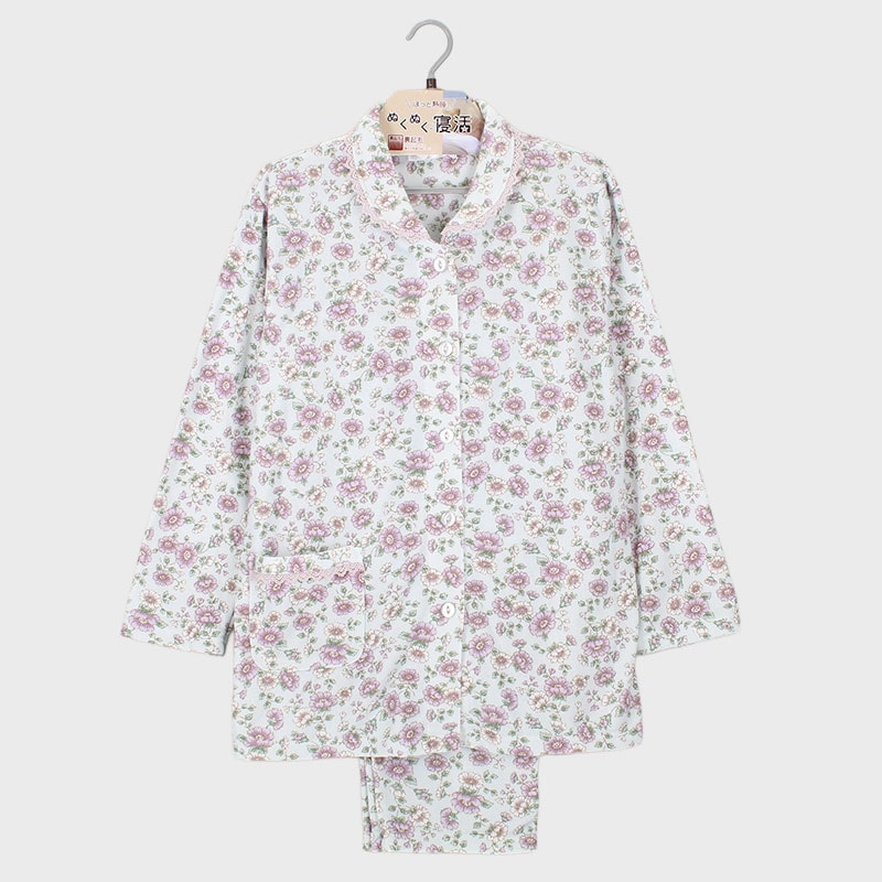婦人『ORIZURU』E/Cシャギー衿付き前開きパジャマ