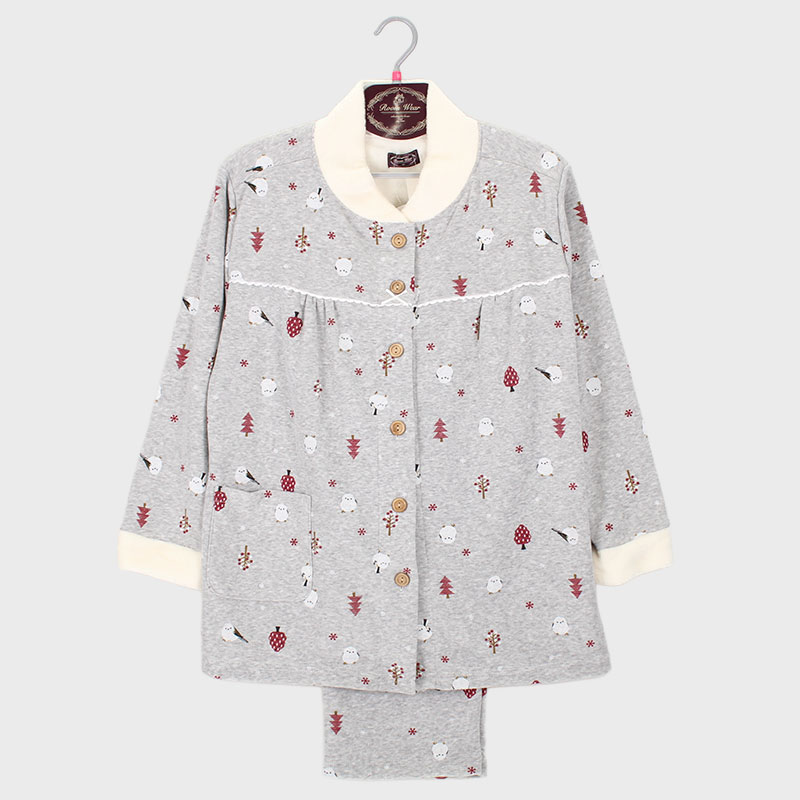 婦人E/Cシャギーボア衿付き前開きパジャマ《WEB》
