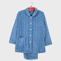 婦人フランネルフリース衿付き前開きパジャマ(無地)《WEB》