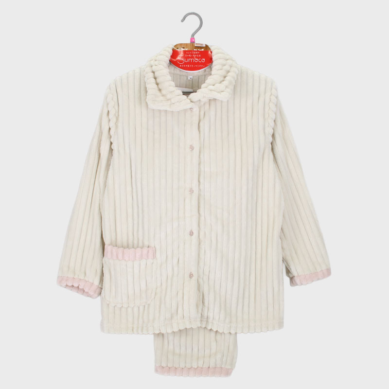 婦人マイクロウェーブ針抜きハイネック前開きパジャマ(無地)《WEB》