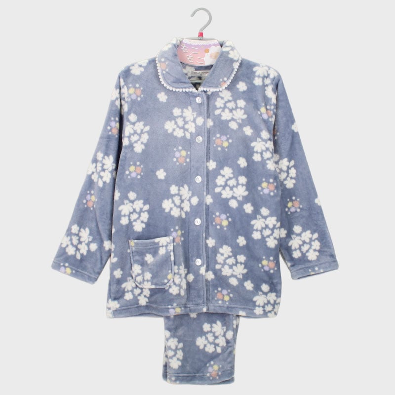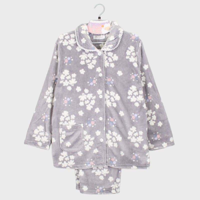 婦人もこもこ衿付き前開きパジャマ(花)