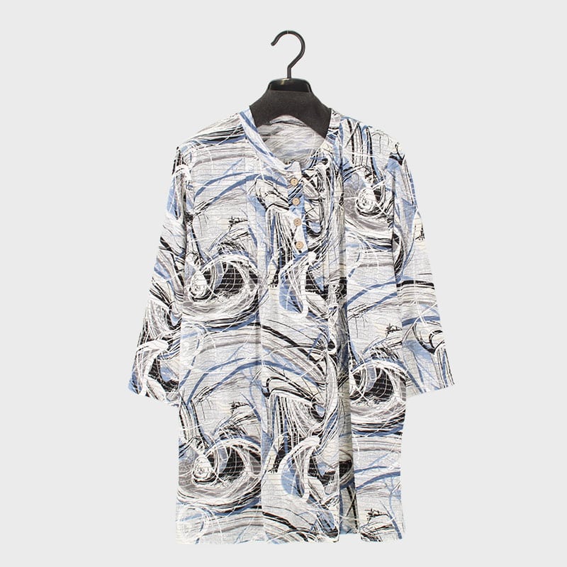 婦人7分袖プリントピンタックチュニック