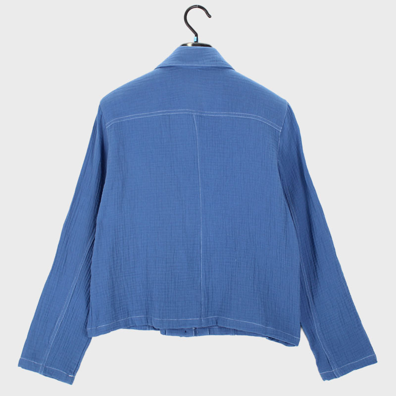 婦人デニム風ガーゼ衿付きブラウス