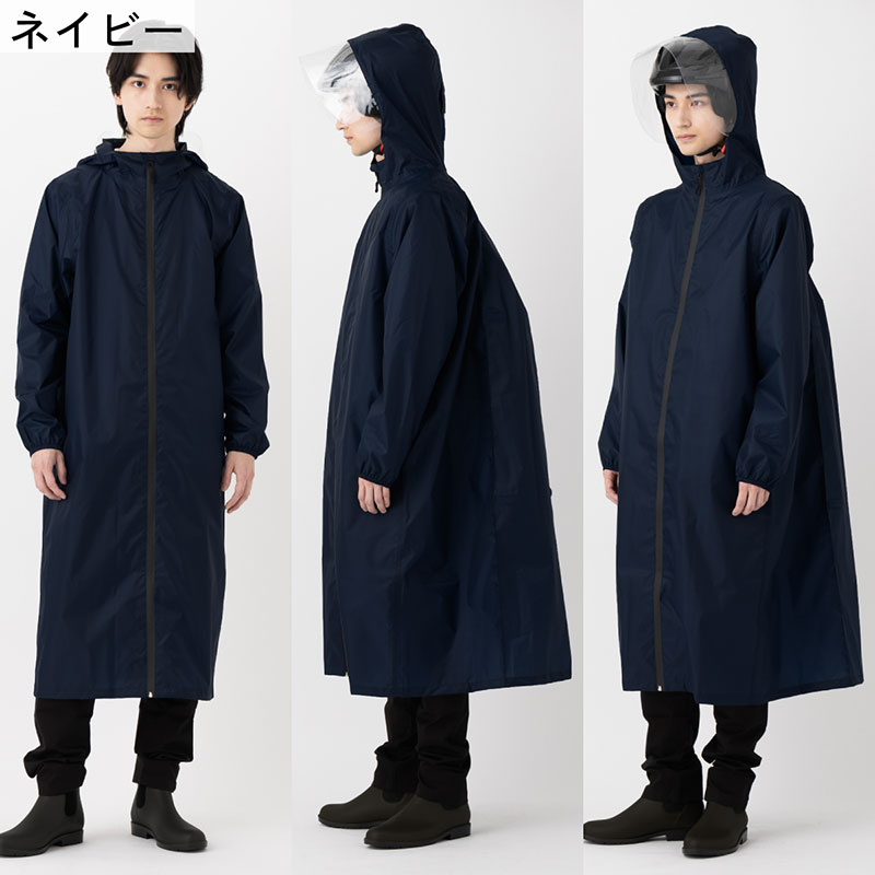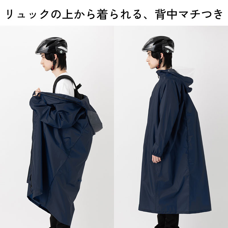 男女兼用サイクルレインコート『ヘルメット対応フード』