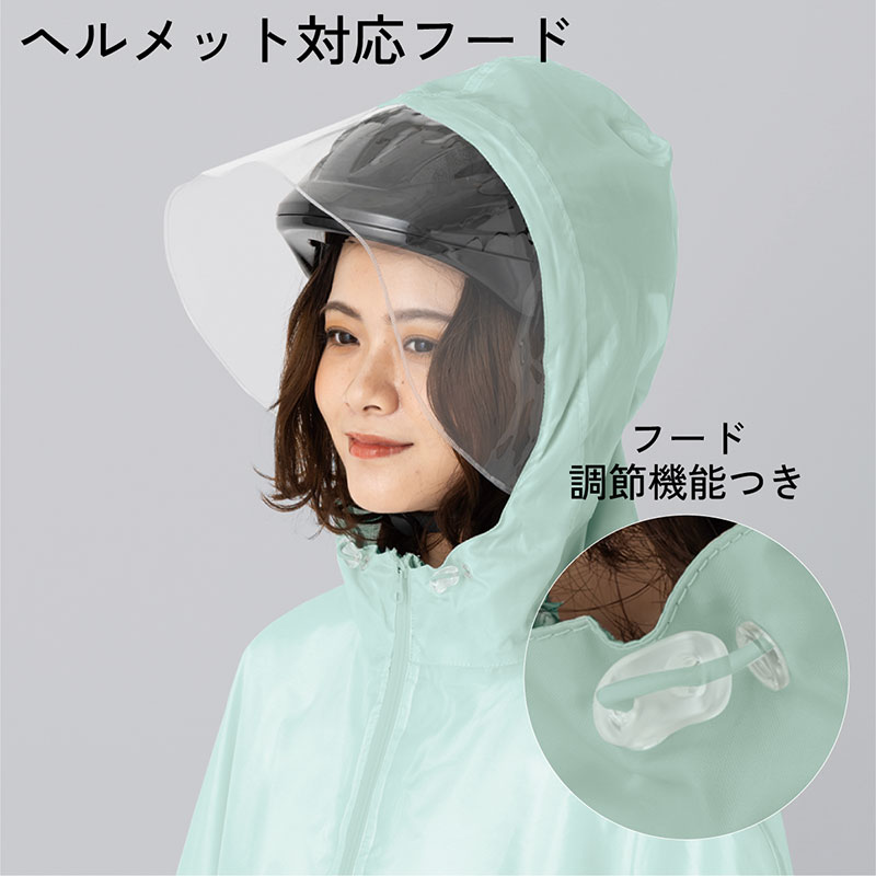 婦人サイクルレインポンチョ『ヘルメット対応フード』