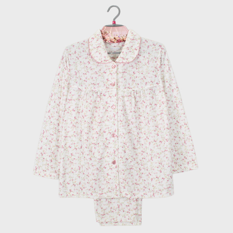 婦人『NOBLE ELE』キルト衿付き前開きパジャマ(バラ)