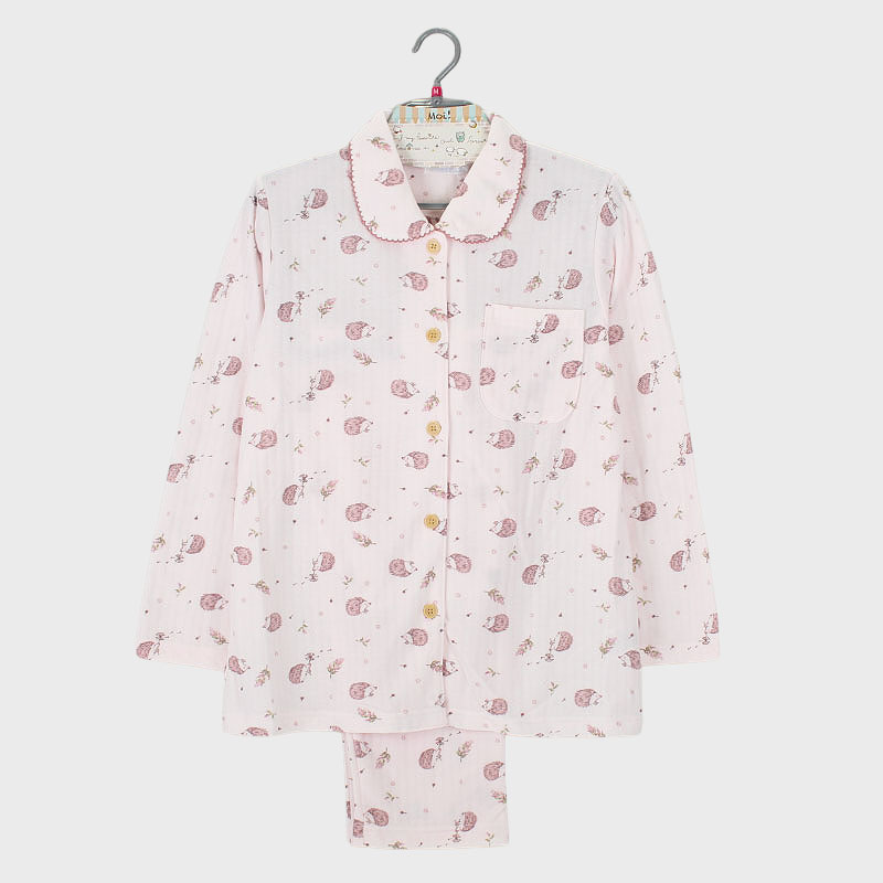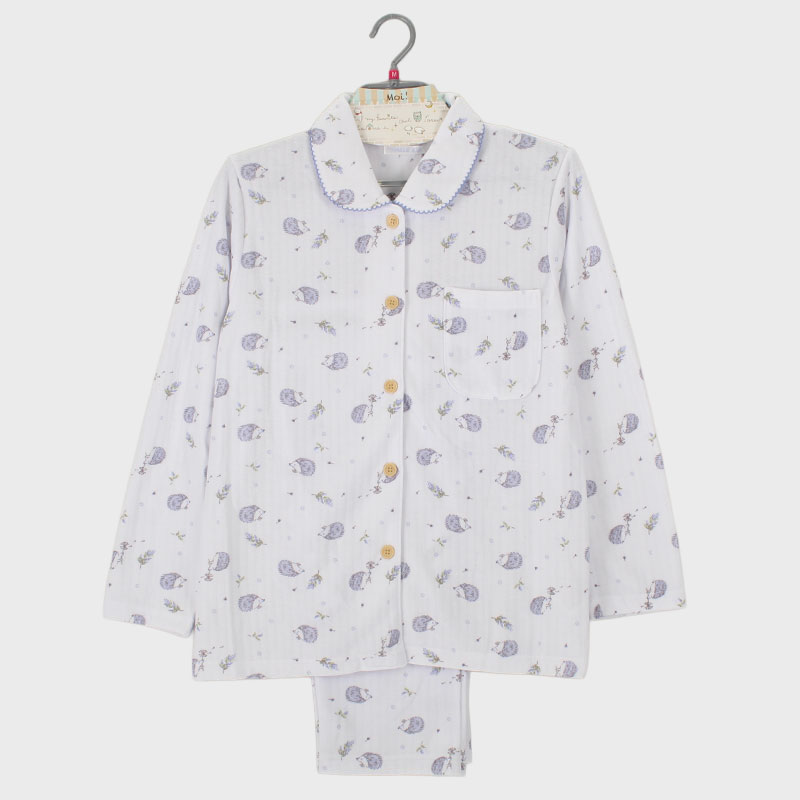 婦人『NOBLE ELE』キルト衿付き前開きパジャマ(ハリネズミ)