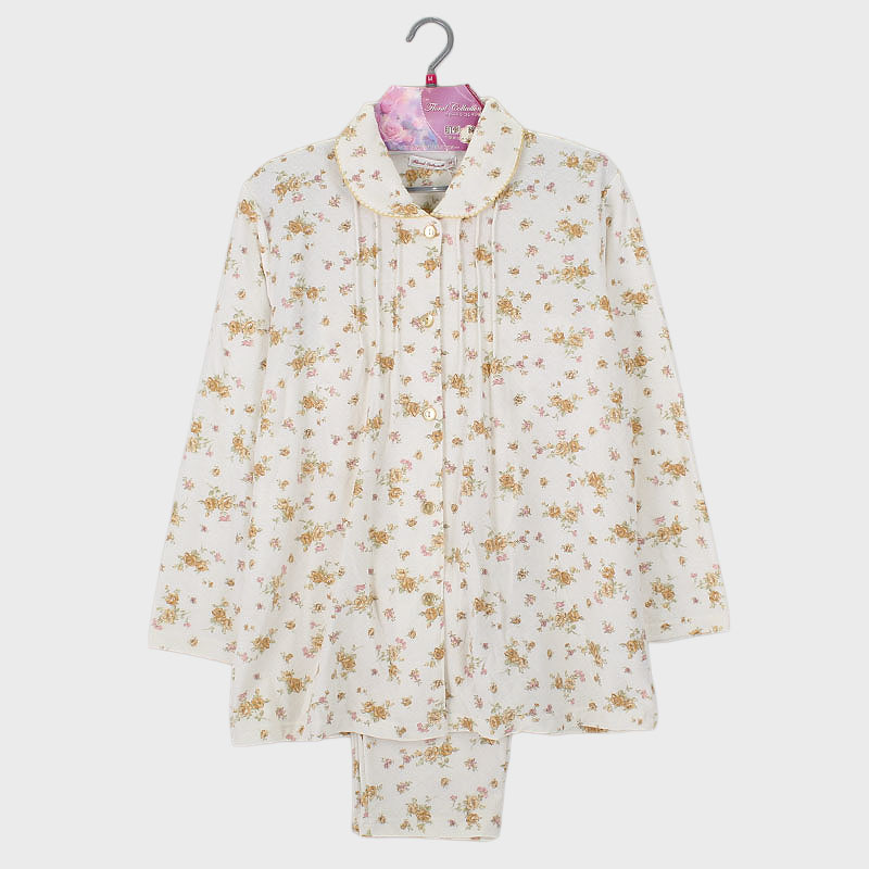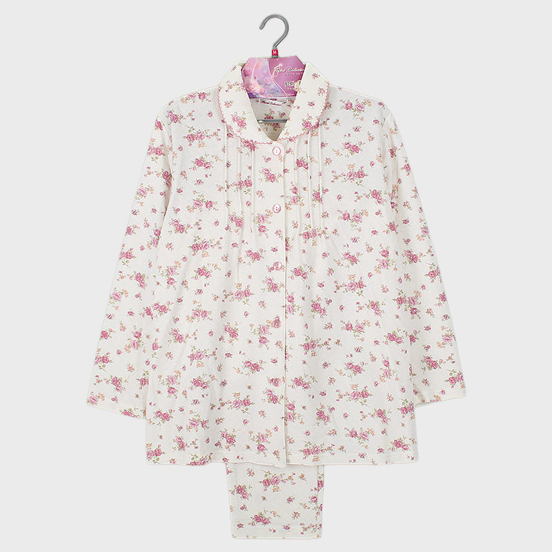婦人裏綿100%キルト衿付き前開きパジャマ(ブーケローズ)