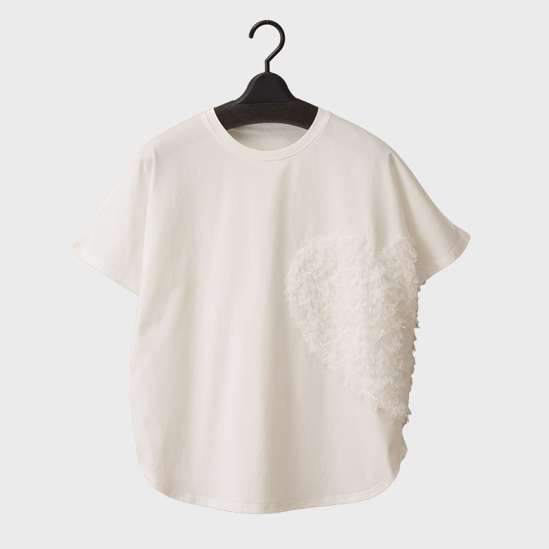 大西衣料(株)が運営する、【公式】卸・仕入れサイト『SELF WEB SHOP』で 婦人ハート柄フリンジ Tシャツ をお仕入れ!