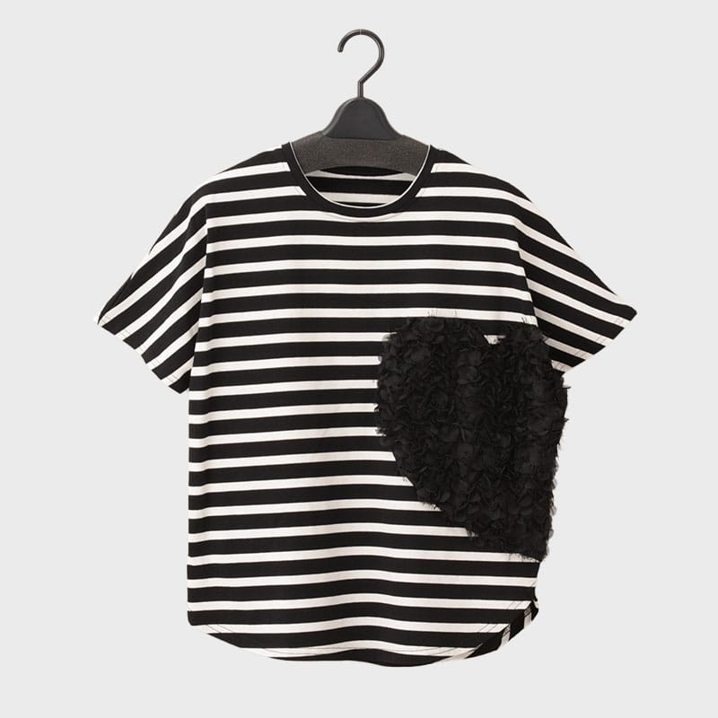 婦人ハート柄フリンジ Tシャツ