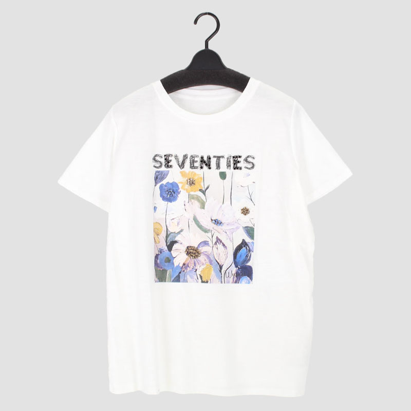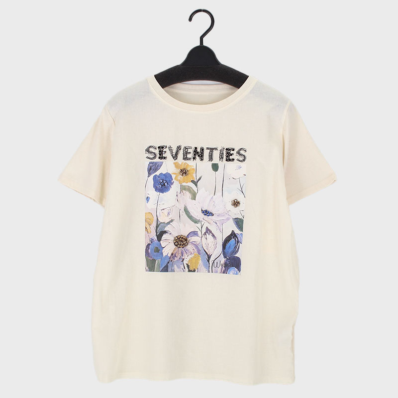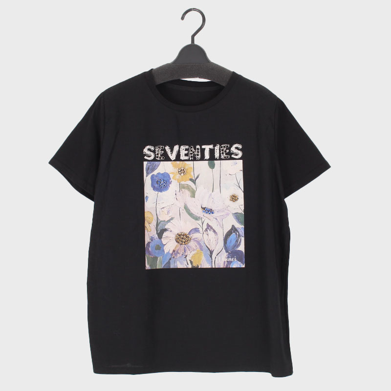 婦人ストーン花柄プリント Tシャツ