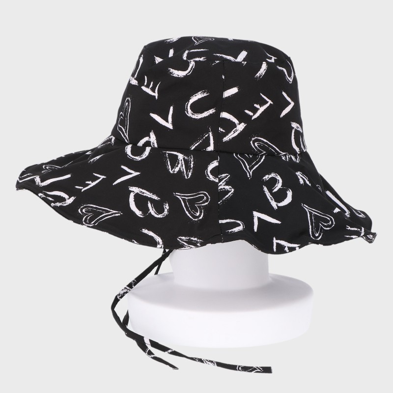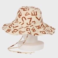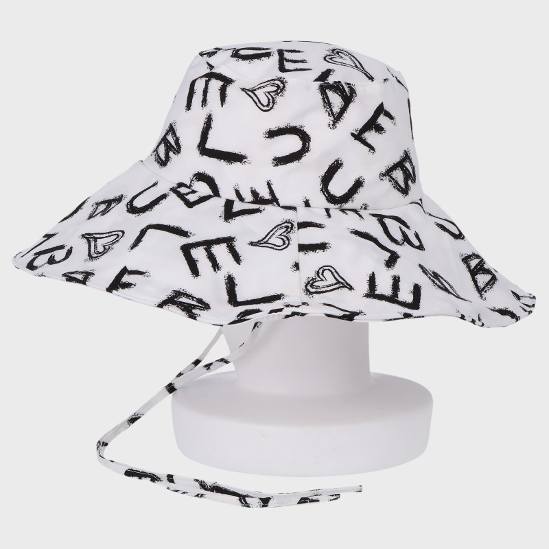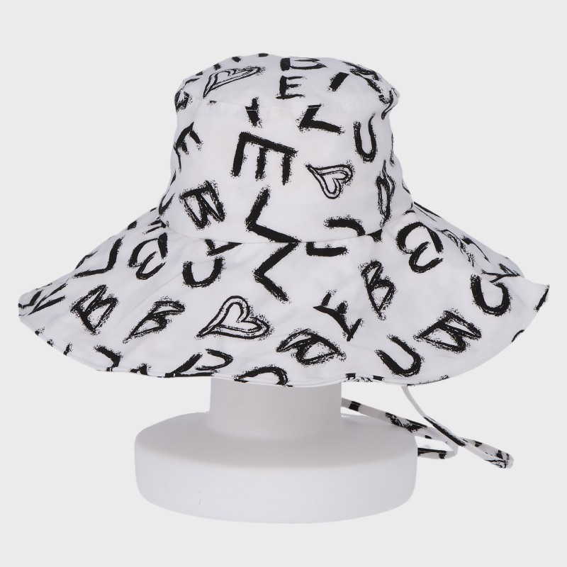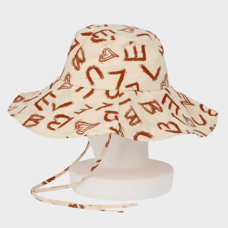 英字柄つば広ハット