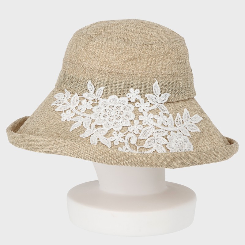 大西衣料(株)が運営する、【公式】卸・仕入れサイト『SELF WEB SHOP』で 雑材風レースつば広エッジアップハット/サイズ調節可・UVケア をお仕入れ!