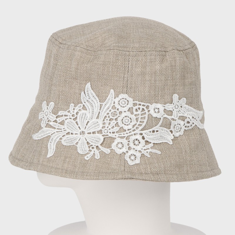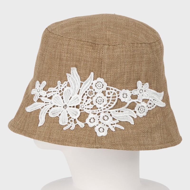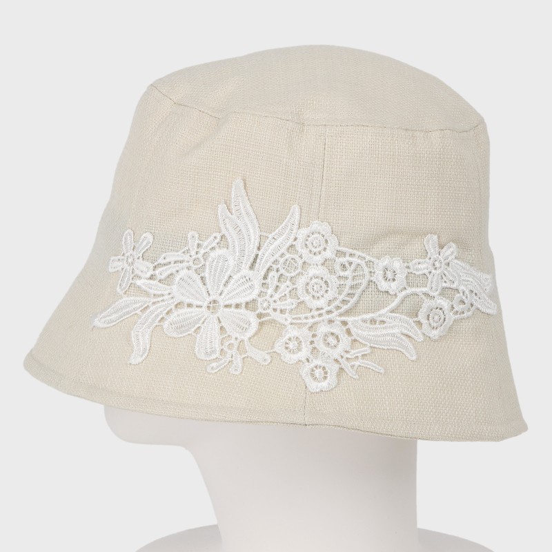 大西衣料(株)が運営する、【公式】卸・仕入れサイト『SELF WEB SHOP』で レース付き麻ライクチューリップハット/サイズ調節可・あご紐用ループ付き をお仕入れ!