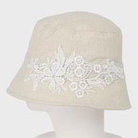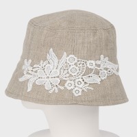 レース付き麻ライクチューリップハット/サイズ調節可・あご紐用ループ付き