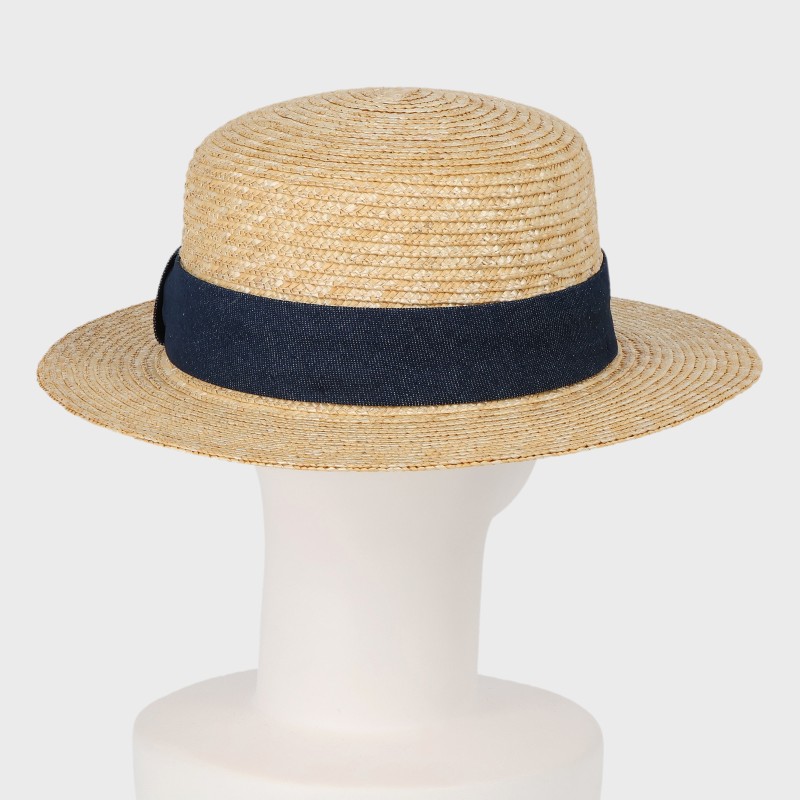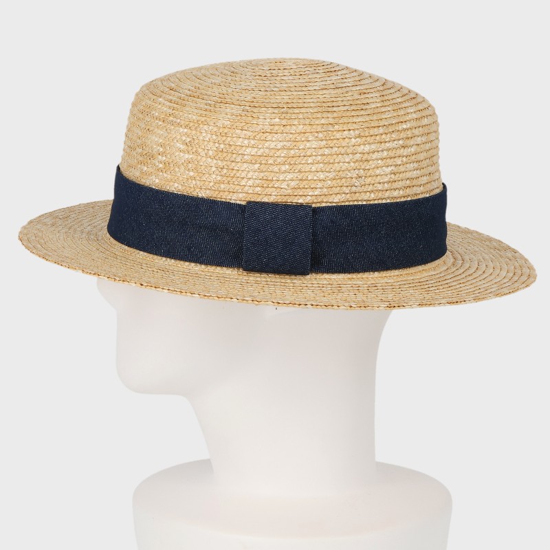 婦人細ストローカンカン帽(デニム巻)/天然素材・UV対策