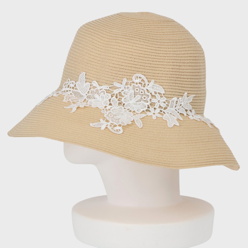 大西衣料(株)が運営する、【公式】卸・仕入れサイト『SELF WEB SHOP』で 『丸洗いOK』レース付きつば広ブレードハット/サイズ調節可・UVケア・あご紐用ループあり をお仕入れ!