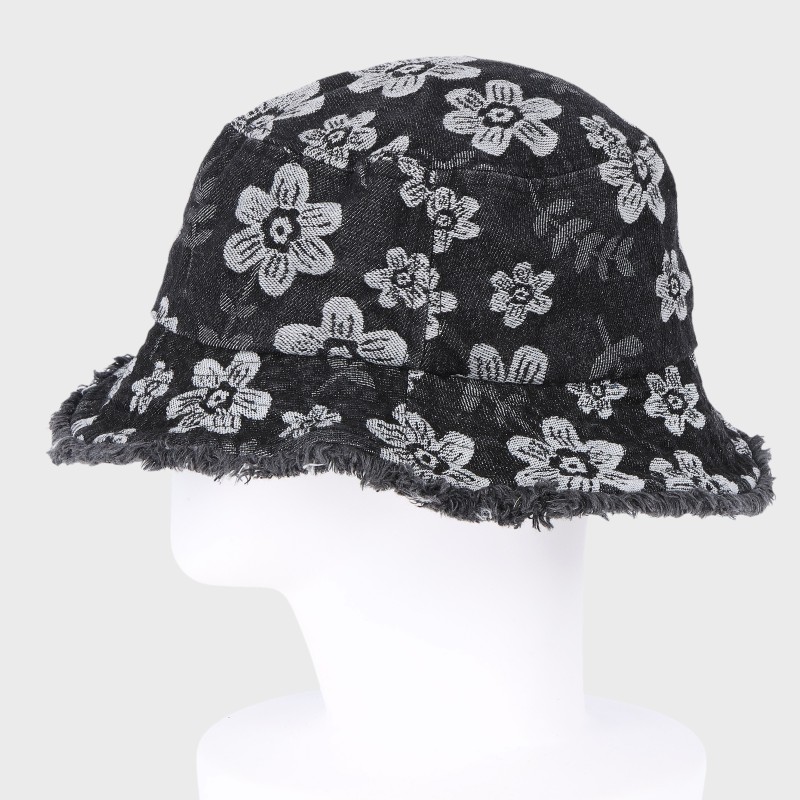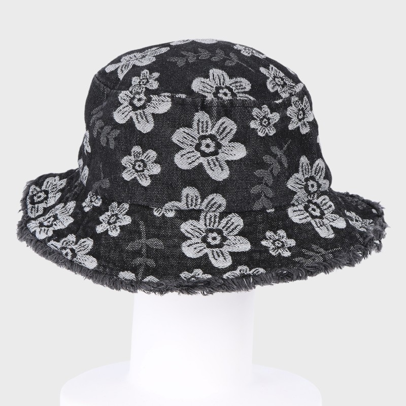大西衣料(株)が運営する、【公式】卸・仕入れサイト『SELF WEB SHOP』で 花柄デニムフリンジバケットハット/サイズ調節可 をお仕入れ!