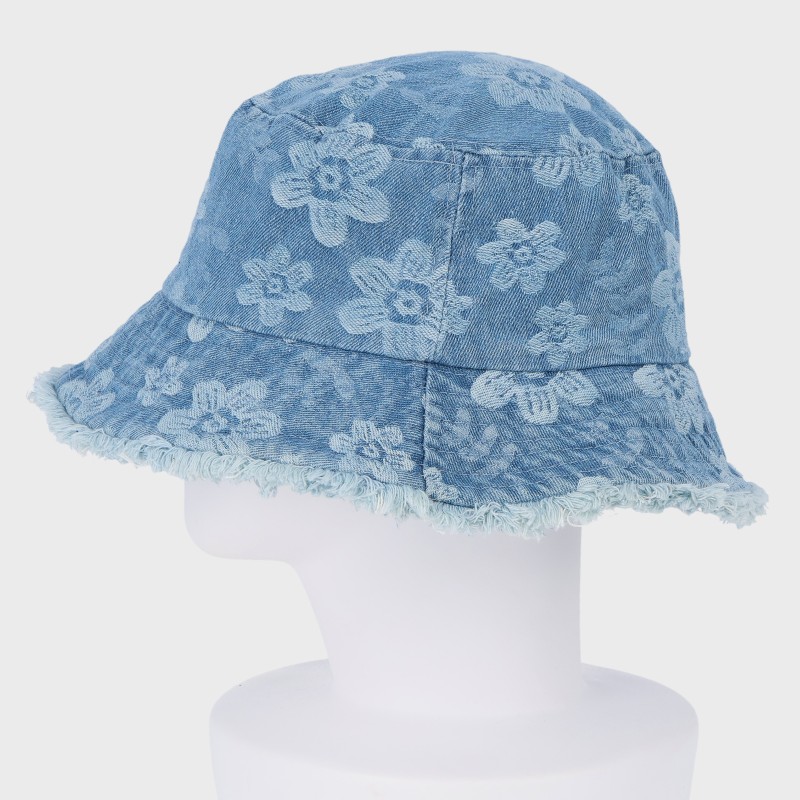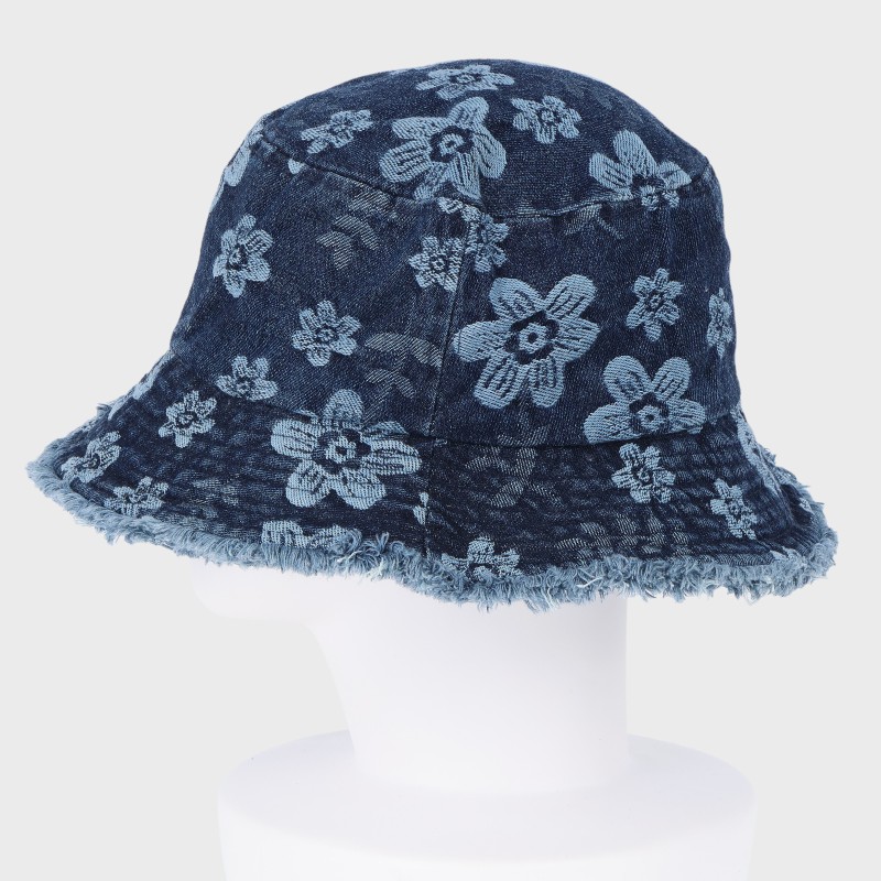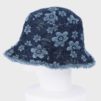 花柄デニムフリンジバケットハット/サイズ調節可