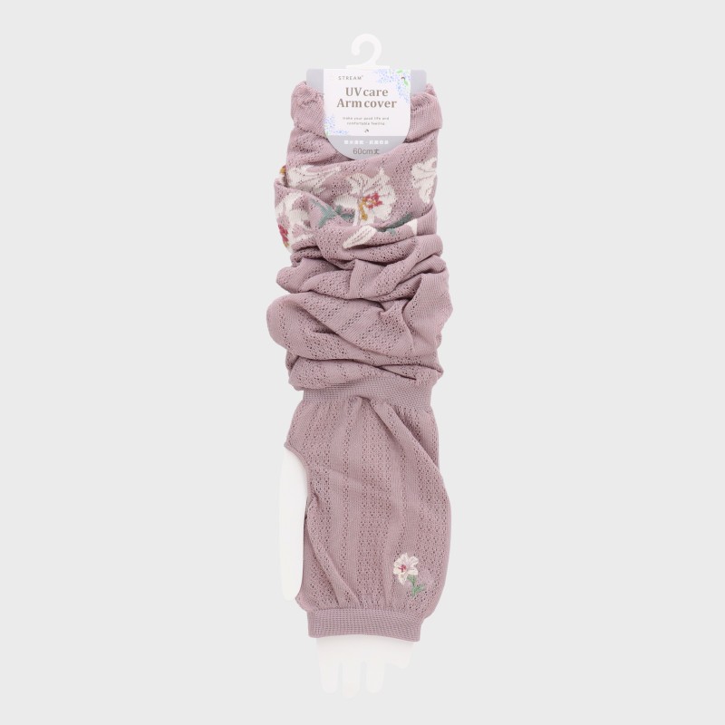 婦人『ユリ刺しゅう付き 60cm』アームカバー 指穴付き『吸水速乾・抗菌防臭』