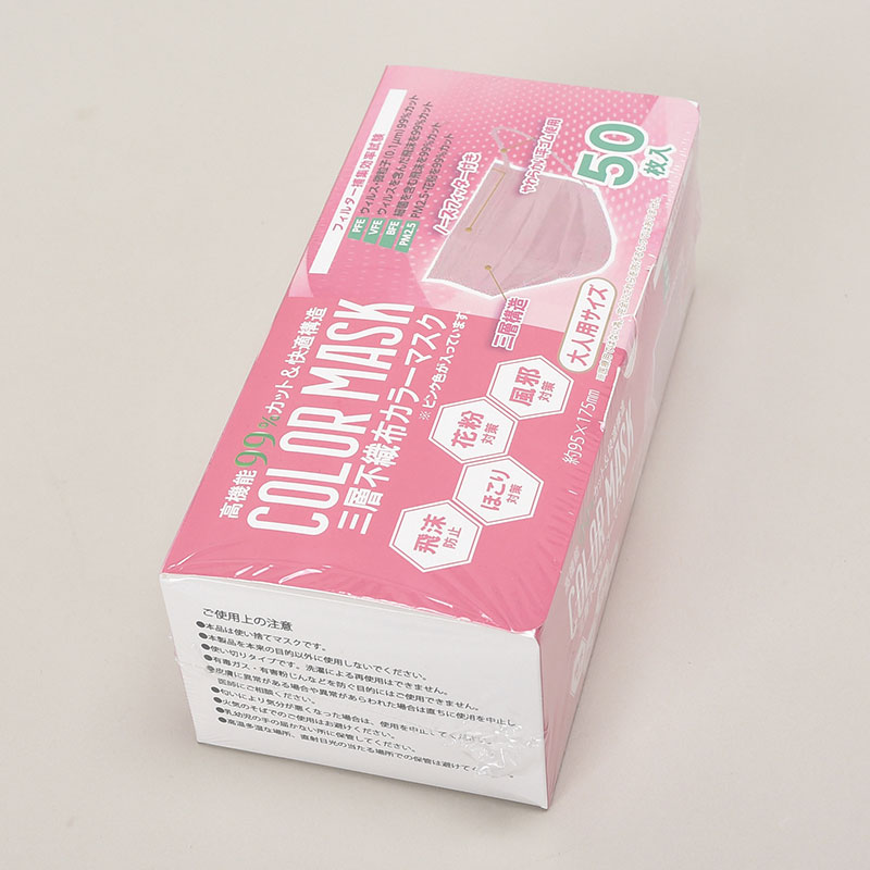 不織布カラーマスク50Pピンク