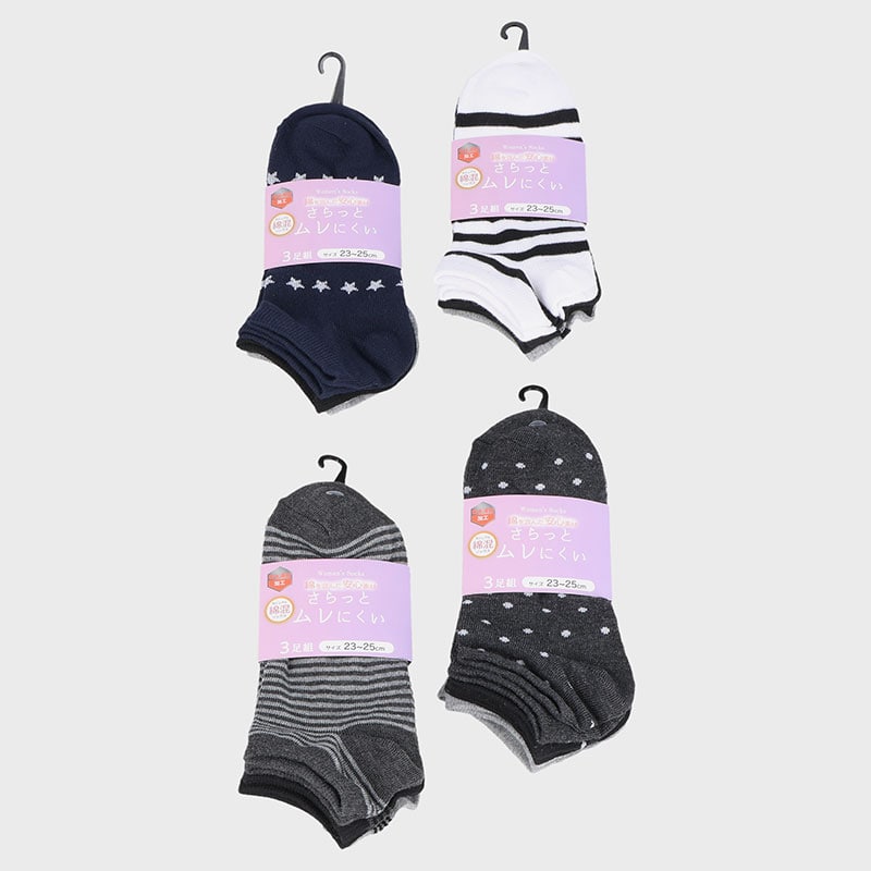 婦人綿混スニーカーソックス3足組「C」