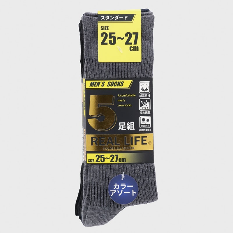 紳士綿混リブクルーソックス5足組(3色)25−27cm