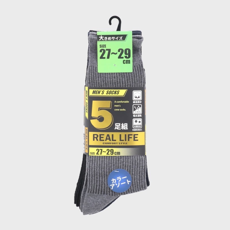 紳士綿混リブクルーソックス5足組(3色)27−29cm