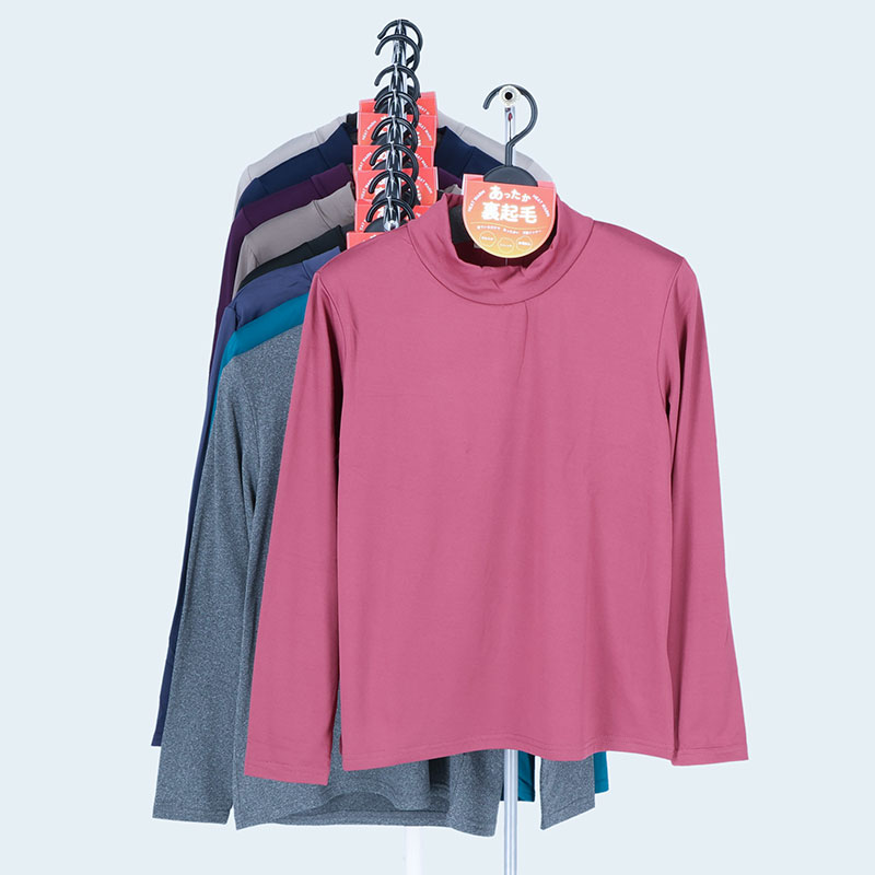 婦人大寸ストレッチ裏起毛ハイネックTシャツ