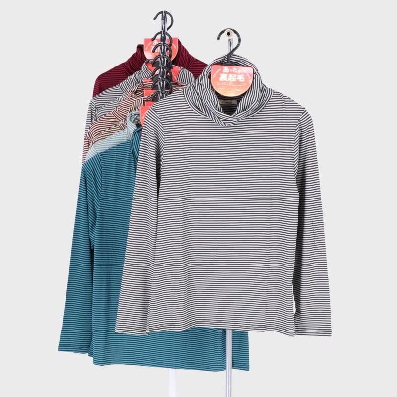 婦人ストレッチ裏起毛ボーダーボーダーくしゅTシャツ
