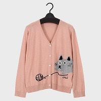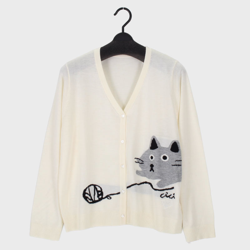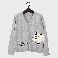 婦人V首ニットカーディガン(ネコ柄)