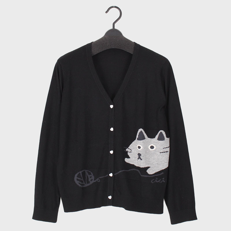 大西衣料(株)が運営する、【公式】卸・仕入れサイト『SELF WEB SHOP』で 婦人V首ニットカーディガン(ネコ柄) をお仕入れ!