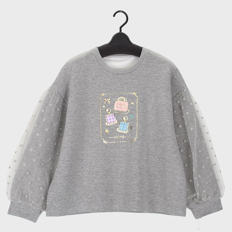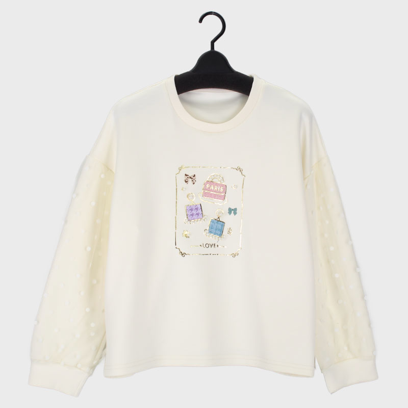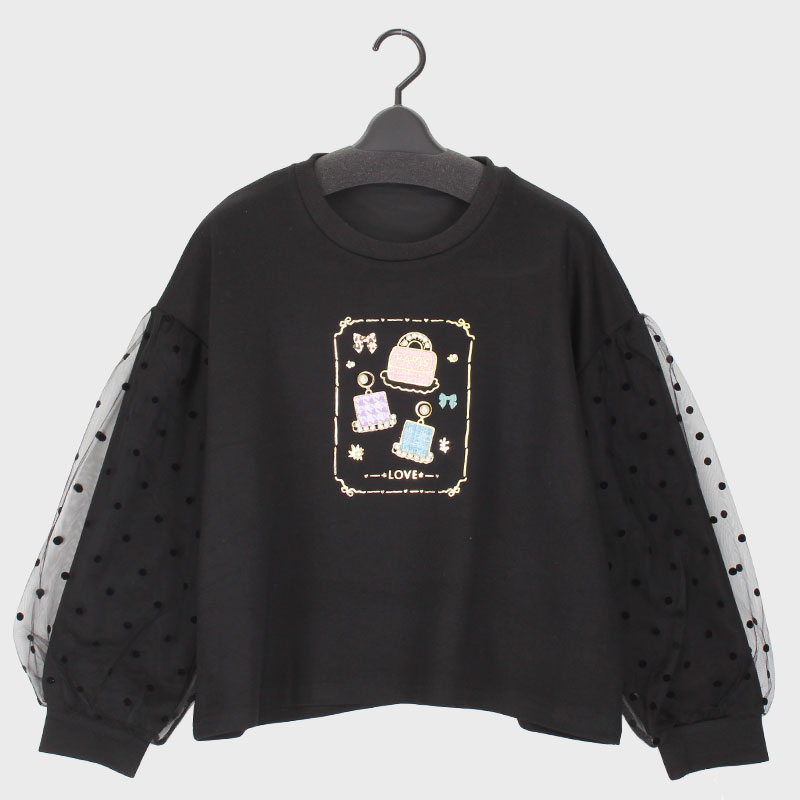 婦人『VIRETE』袖ドットチュール切替トップス
