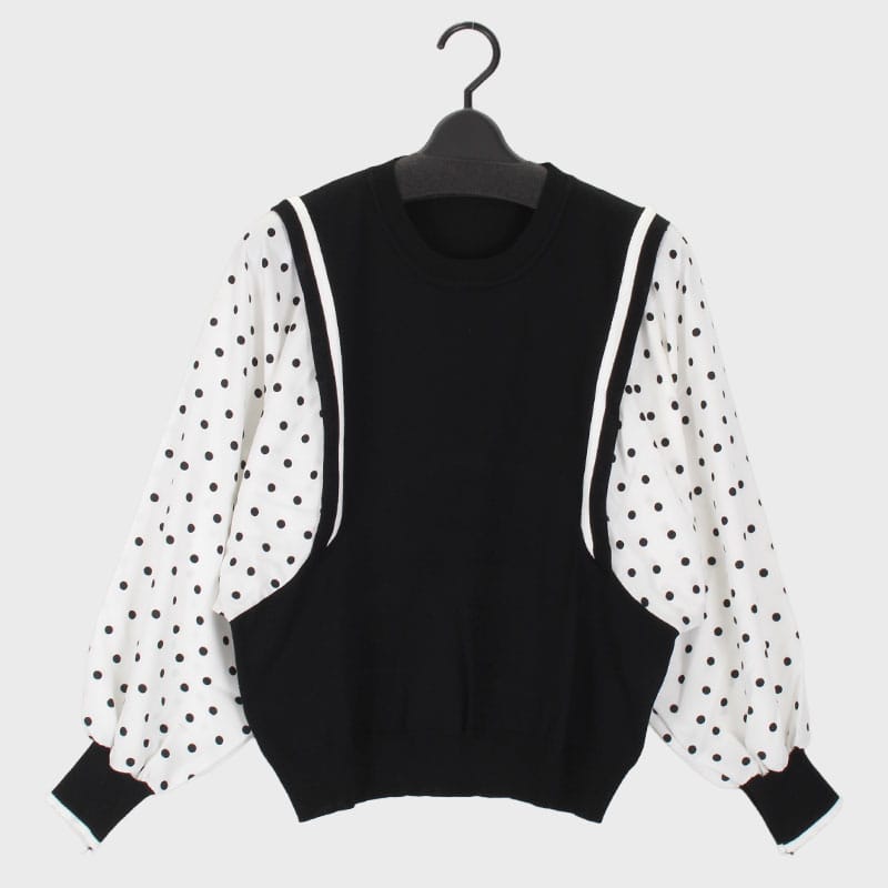 婦人ドットスリーブ切替ニットトップス