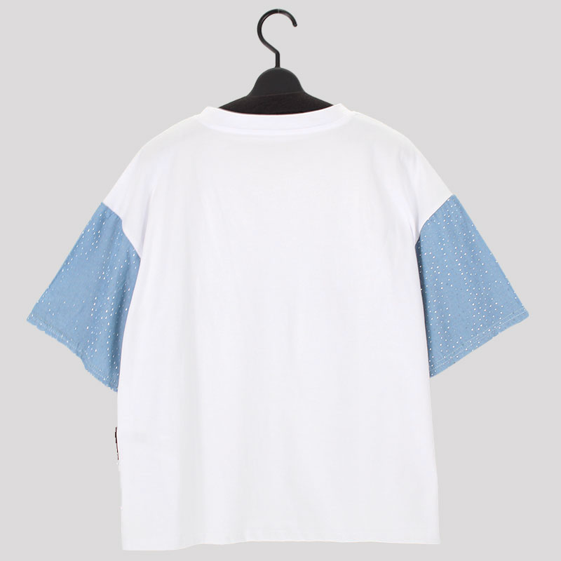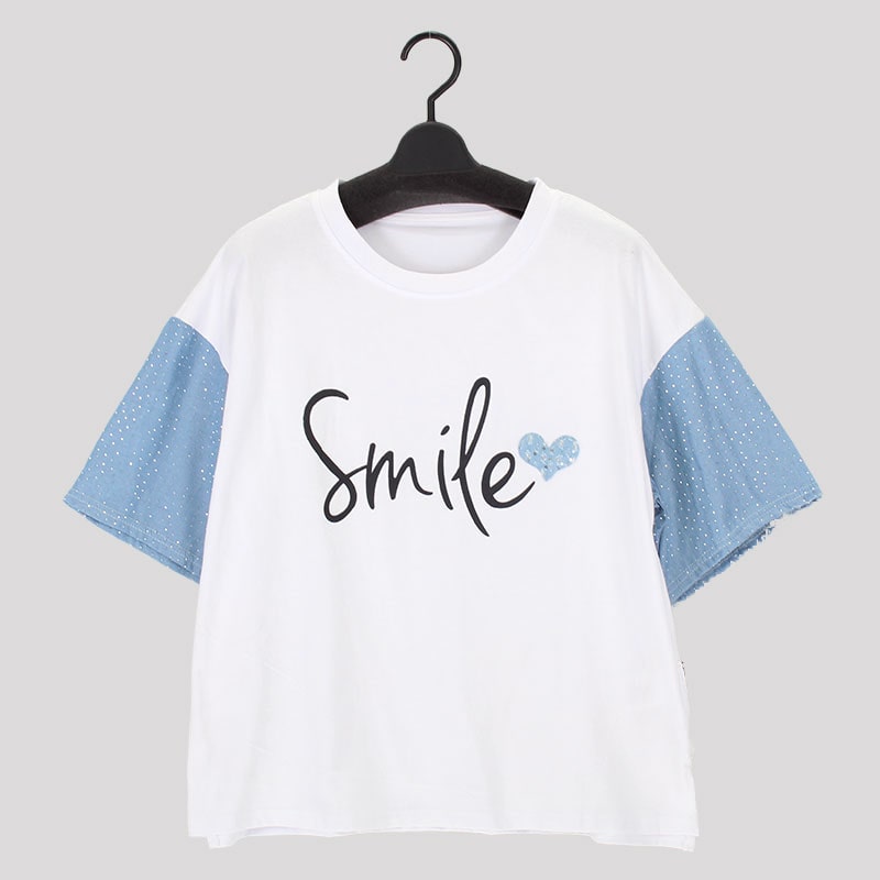 大西衣料(株)が運営する、【公式】卸・仕入れサイト『SELF WEB SHOP』で 婦人デニム切替えキラキラTシャツ をお仕入れ!