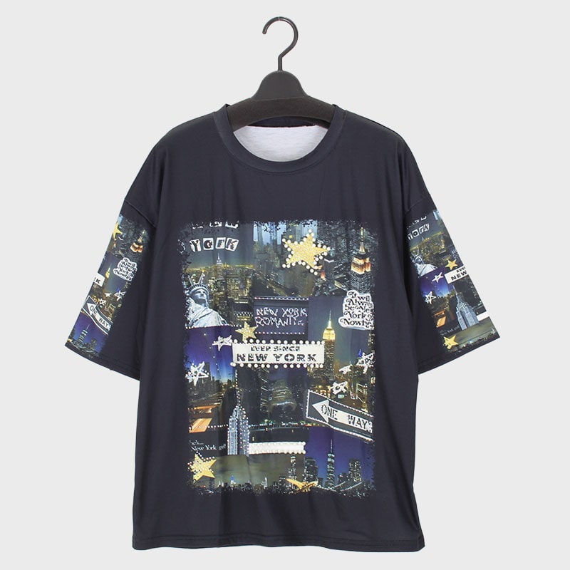大西衣料(株)が運営する、【公式】卸・仕入れサイト『SELF WEB SHOP』で 婦人英字プリントパールキラキラTシャツ をお仕入れ!