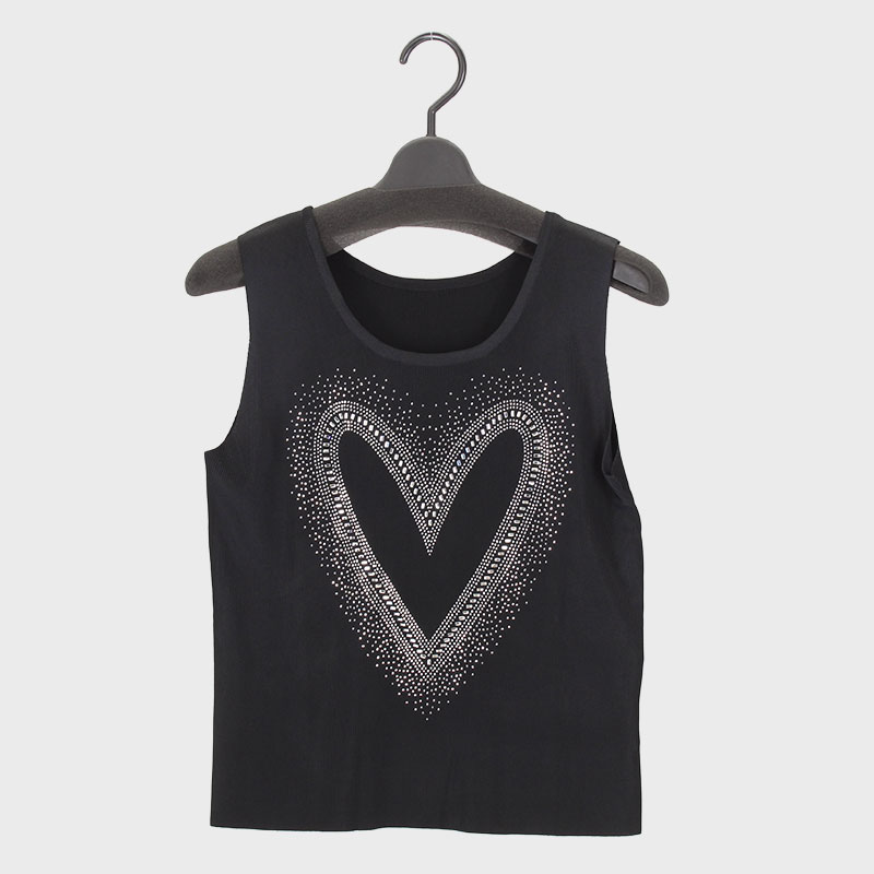 婦人キラキラストーン付きニットタンクトップ