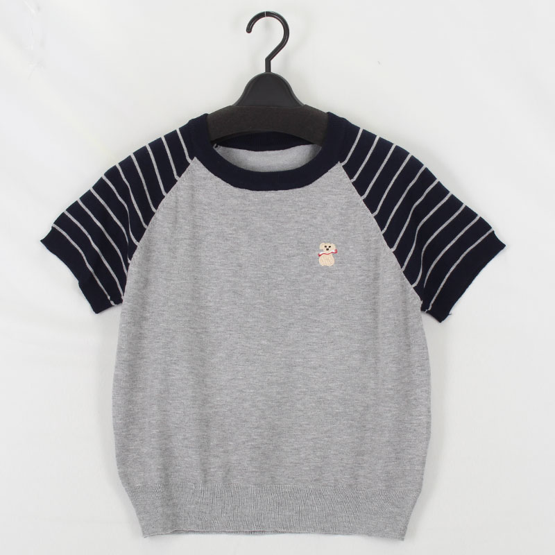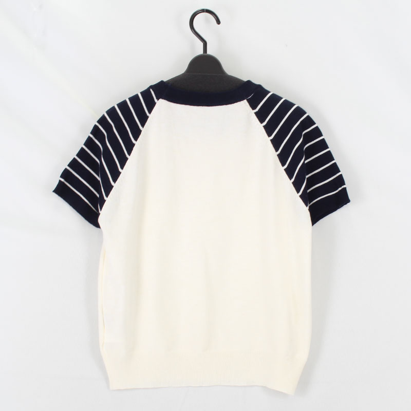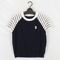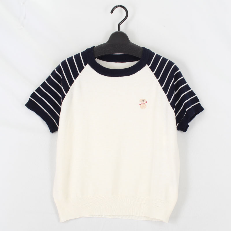 婦人袖ボーダーワンポイントTシャツ