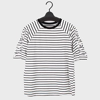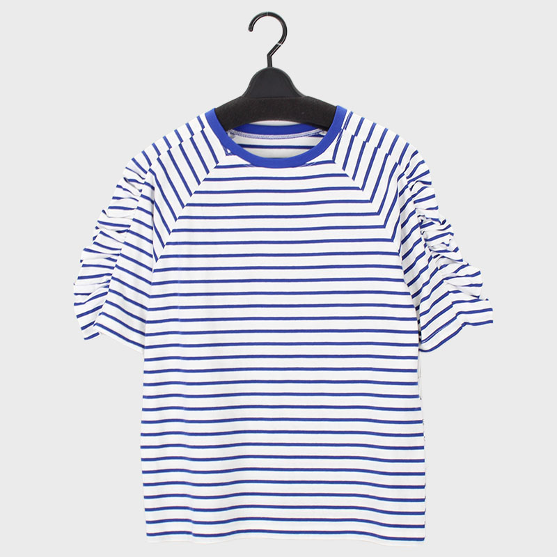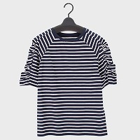 婦人腕シャーリング ボーダーTシャツ