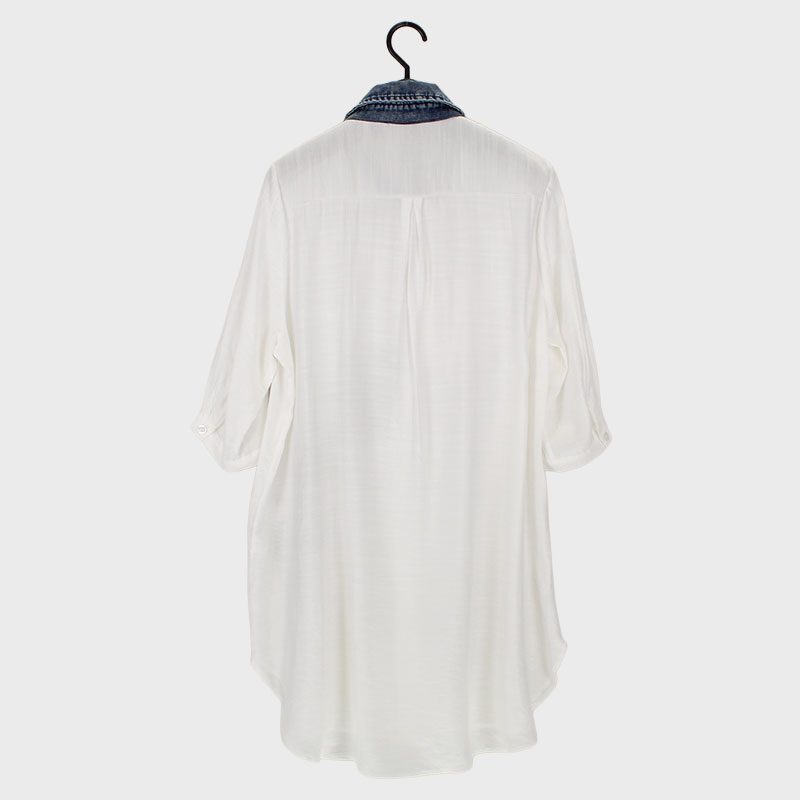 大西衣料(株)が運営する、【公式】卸・仕入れサイト『SELF WEB SHOP』で 婦人『Khaki Koji』襟デニム ロングシャツ をお仕入れ!
