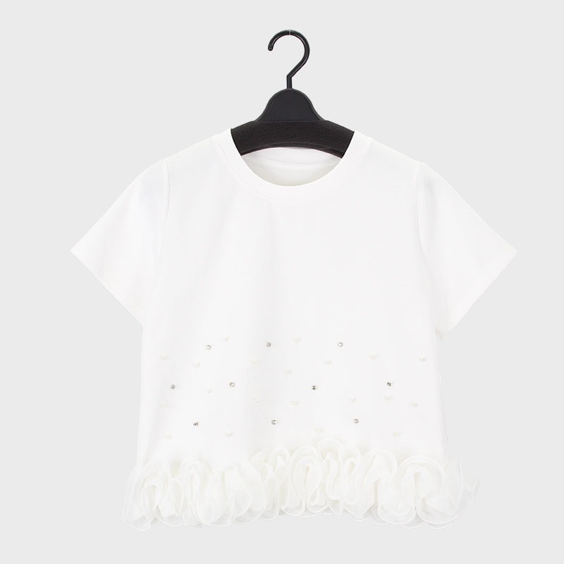 婦人『VERITE』裾フリルTシャツ パール付