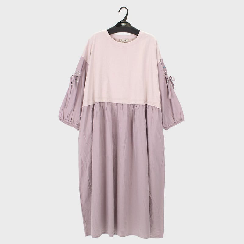 大西衣料(株)が運営する、【公式】卸・仕入れサイト『SELF WEB SHOP』で 婦人『isoLaine』7分袖刺しゅう入り布帛切替ワンピース をお仕入れ!