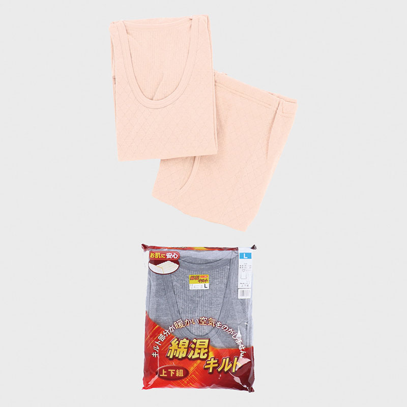 紳士綿混キルト長袖U首・ズボン下 上下組
