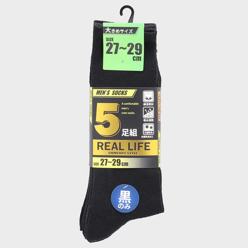 紳士綿混リブクルーソックス5足組(黒)27−29cm