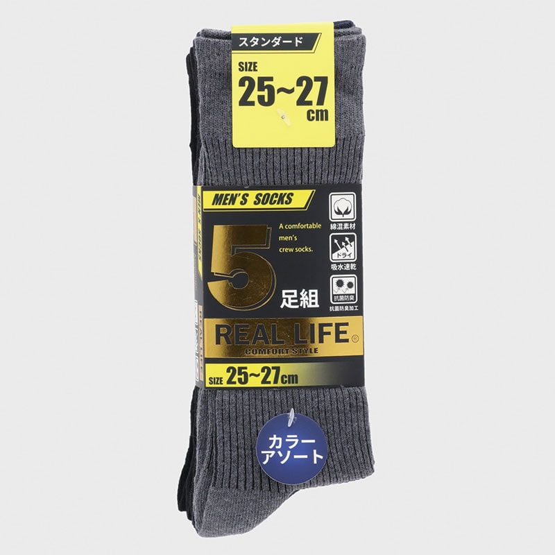 紳士綿混リブクルーソックス5足組(3色)25−27cm