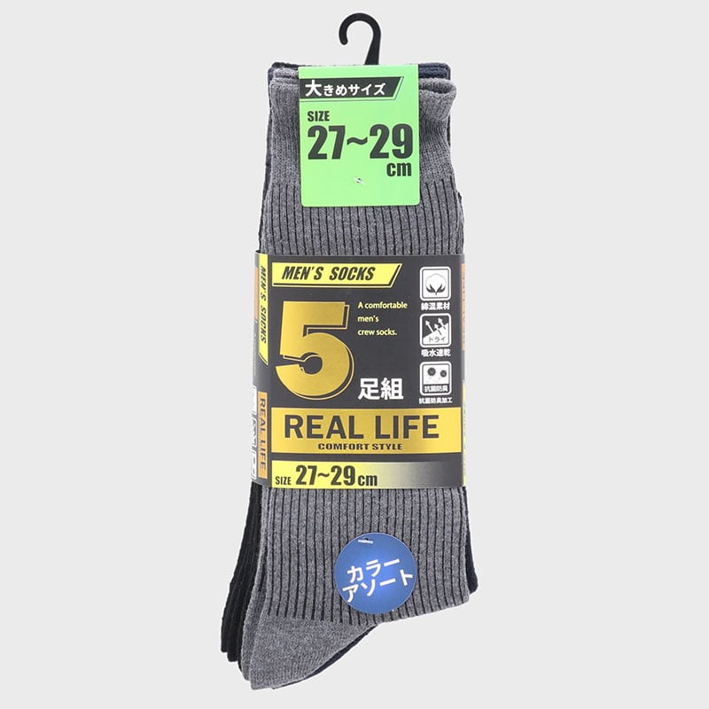 紳士綿混リブクルーソックス5足組(3色)27−29cm