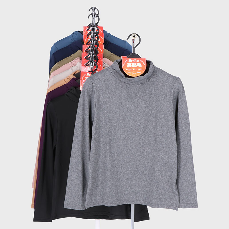 婦人大寸ストレッチ裏起毛くしゅハイネックTシャツ